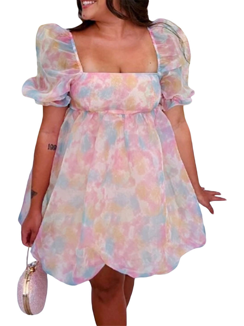 A-line Velvet Mini Dress Square Collar Half Sleeve Pullover Non Stretch Solid Di