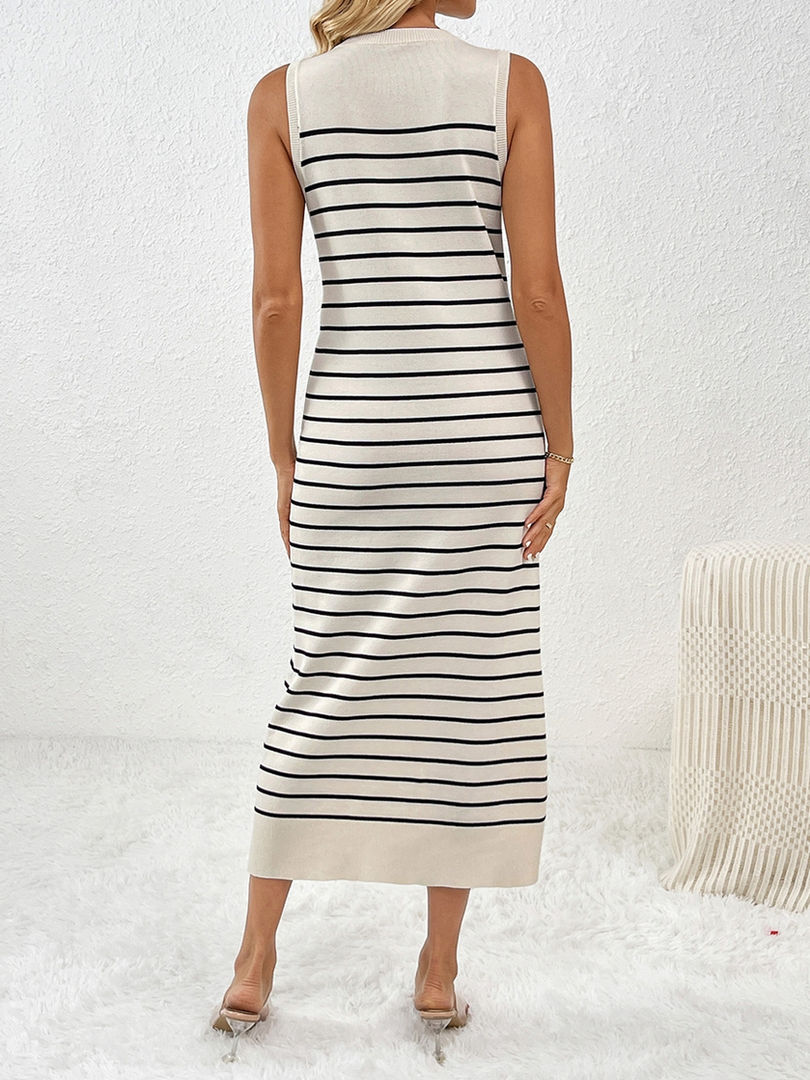 Knit Tank O-Neck Pullover Ankle-Length A-Line Velvet Solid Dress Diamonds