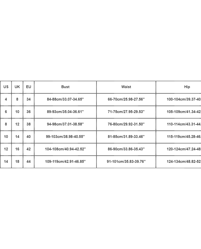 US Size | Bust | Waist | Hip | Hollow to Hem |
