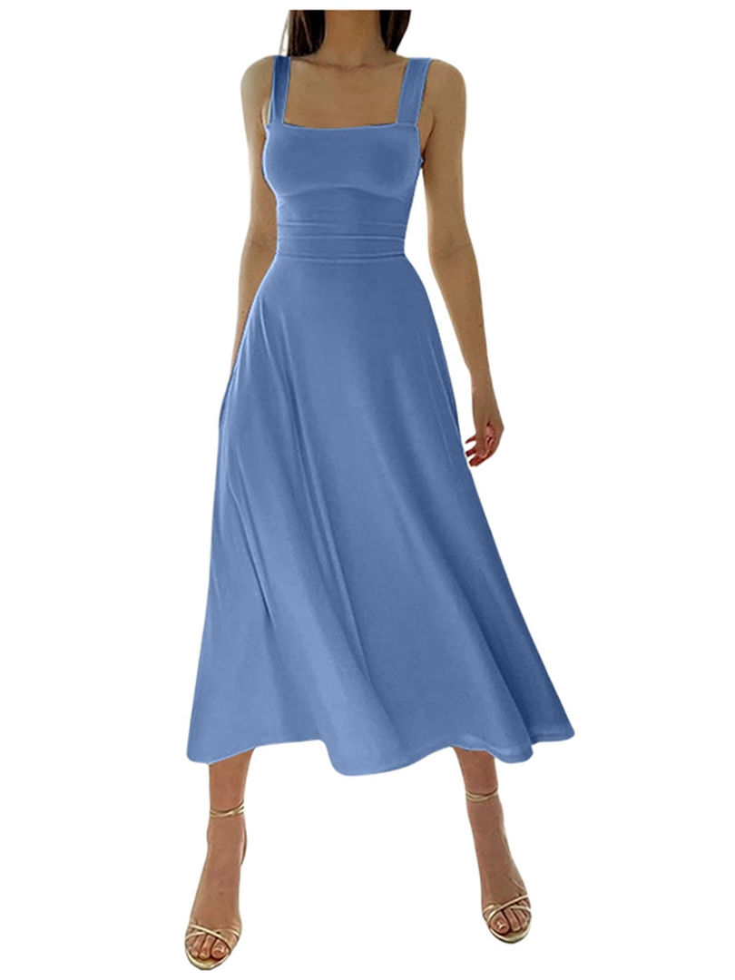 Tags: women's sleeveless knit dress, knee-length casual dress, high stretch summer dress, O-neck knit dress, solid color A-line dress, comfortable polyester dress, everyday casual wear, junior women's dress, simple summer outfit, versatile knit dress, sleeveless O-neck dress, natural fiber blend dress, casual knee-length dress, summer knitwear.