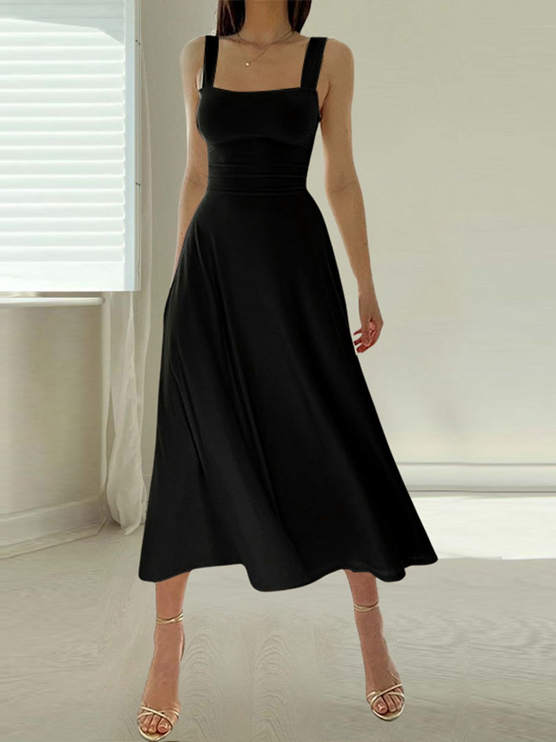 Sleeveless O-Neck Solid Polyester Knit A-Line Knee-Length Casual Stretch Dress