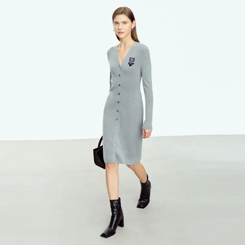 Women's V-Neck Knitted Dress Long Sleeve Fall Minimalist Elegant Casual