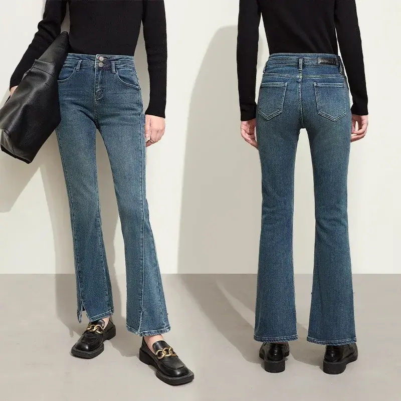 Women's Winter Bootcut Denim Jeans - Minimalist Classic Double Waist