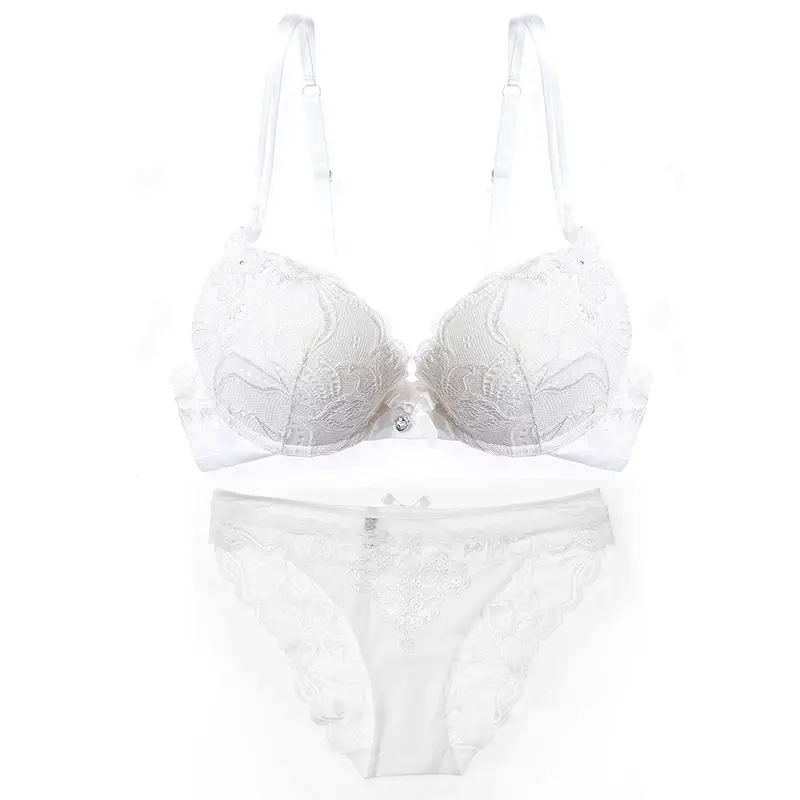 Women Sexy Bra Floral Lace Embroidery Rhinestone Brief Set Female Lingerie Brass