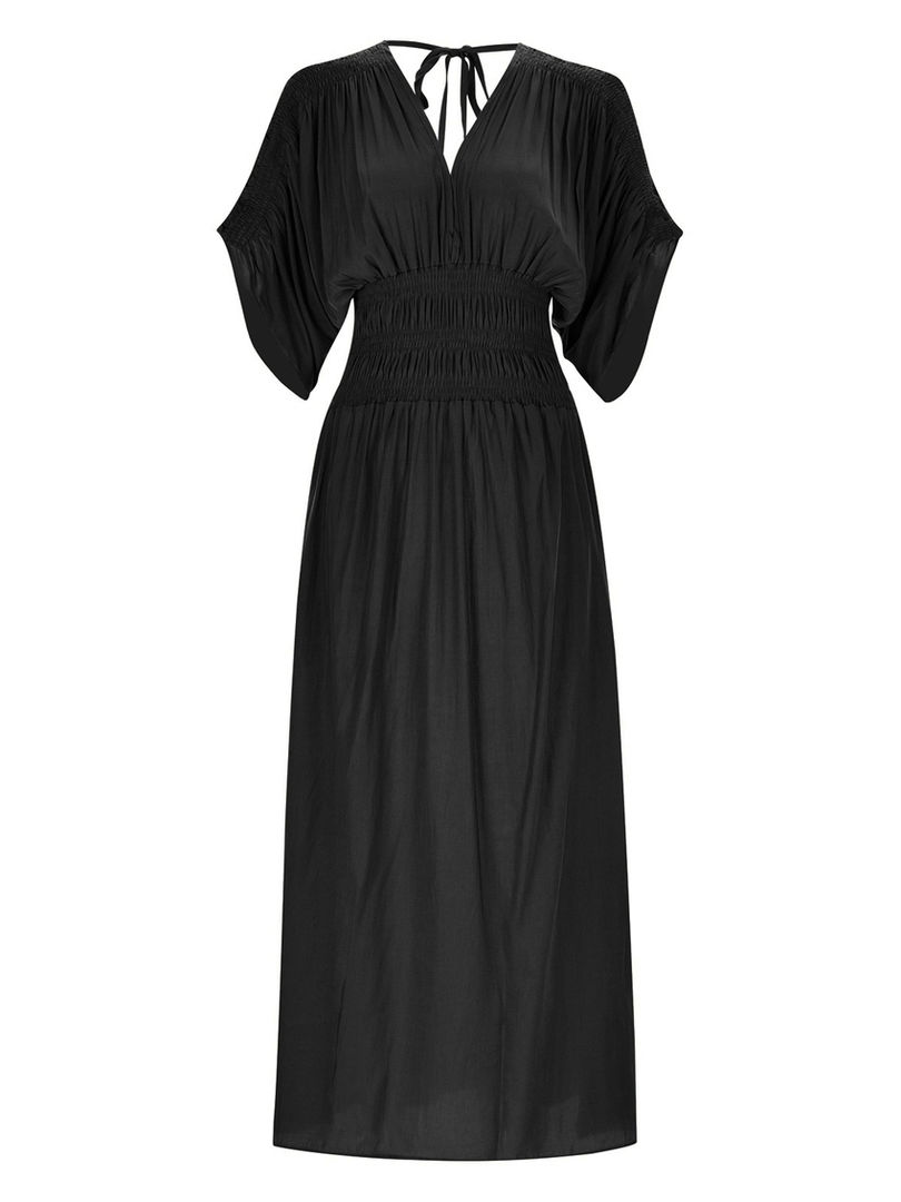 Solid Knit Knee-Length Sleeveless O-Neck A-LINE Casual High Stretch Sundress