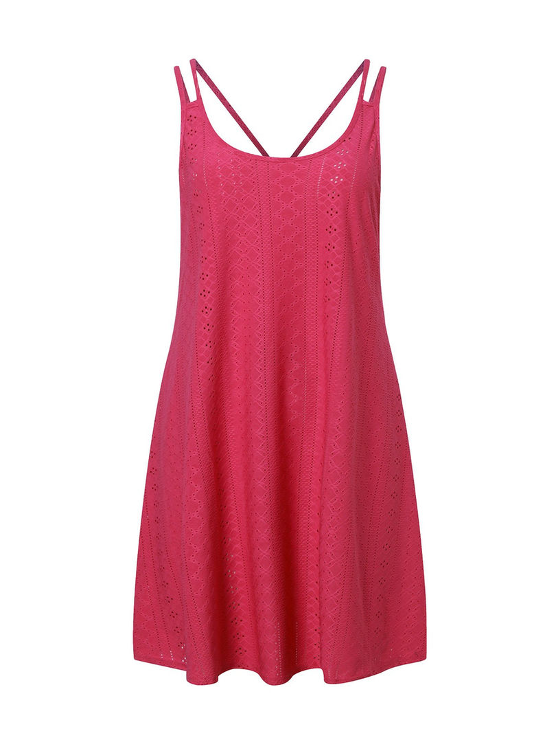 This is a simple, comfortable sleeveless dress designed for easy wear during warmer months. It features a classic O-neck and falls to a versatile knee length.