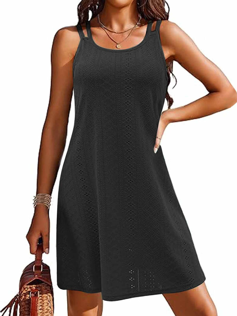 Tags: women's sleeveless summer dress, casual knee length dress, solid color a-line dress, high stretch polyester dress, o neck sleeveless dress, simple summer dress women, everyday casual dress, comfortable stretch dress, sleeveless a-line summer dress, knee length casual summer dress, solid color knee length dress, easy wear summer dress, junior women's summer dress