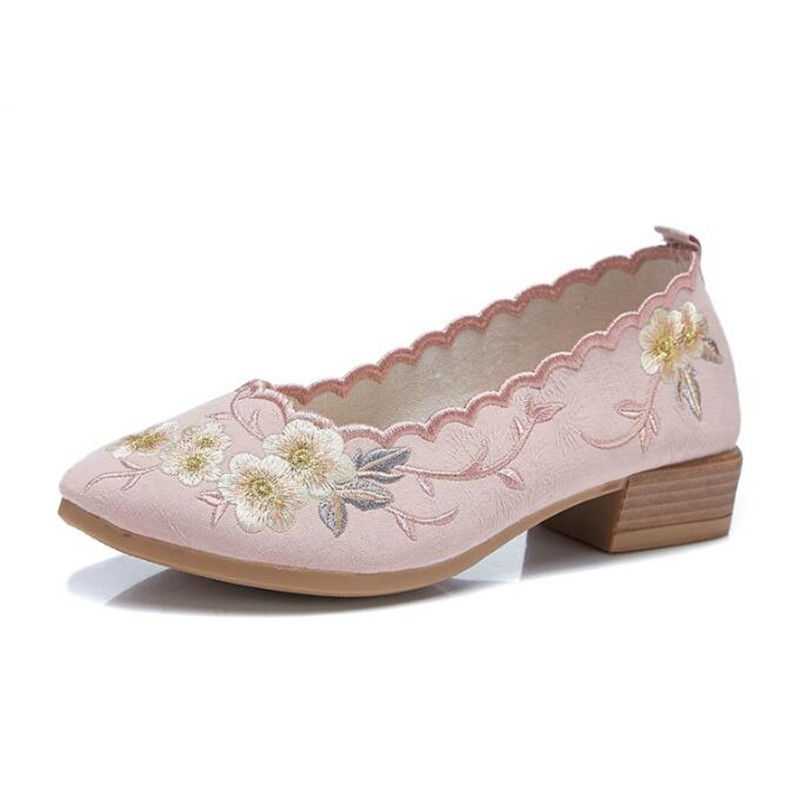 Tags: women's floral embroidered loafers, vintage style pointed toe flats, comfortable low heel dress shoes, slip on embroidered pumps, ethnic print shoes for ladies, spring autumn pointed toe loafers, cotton fabric slip on shoes, floral embroidery low heel pumps, women's vintage loafers with embroidery, pointed toe slip on dress shoes, square heel embroidered loafers, comfortable work shoes with pointed toe, boho style floral shoes, ladies embroidered slip on shoes