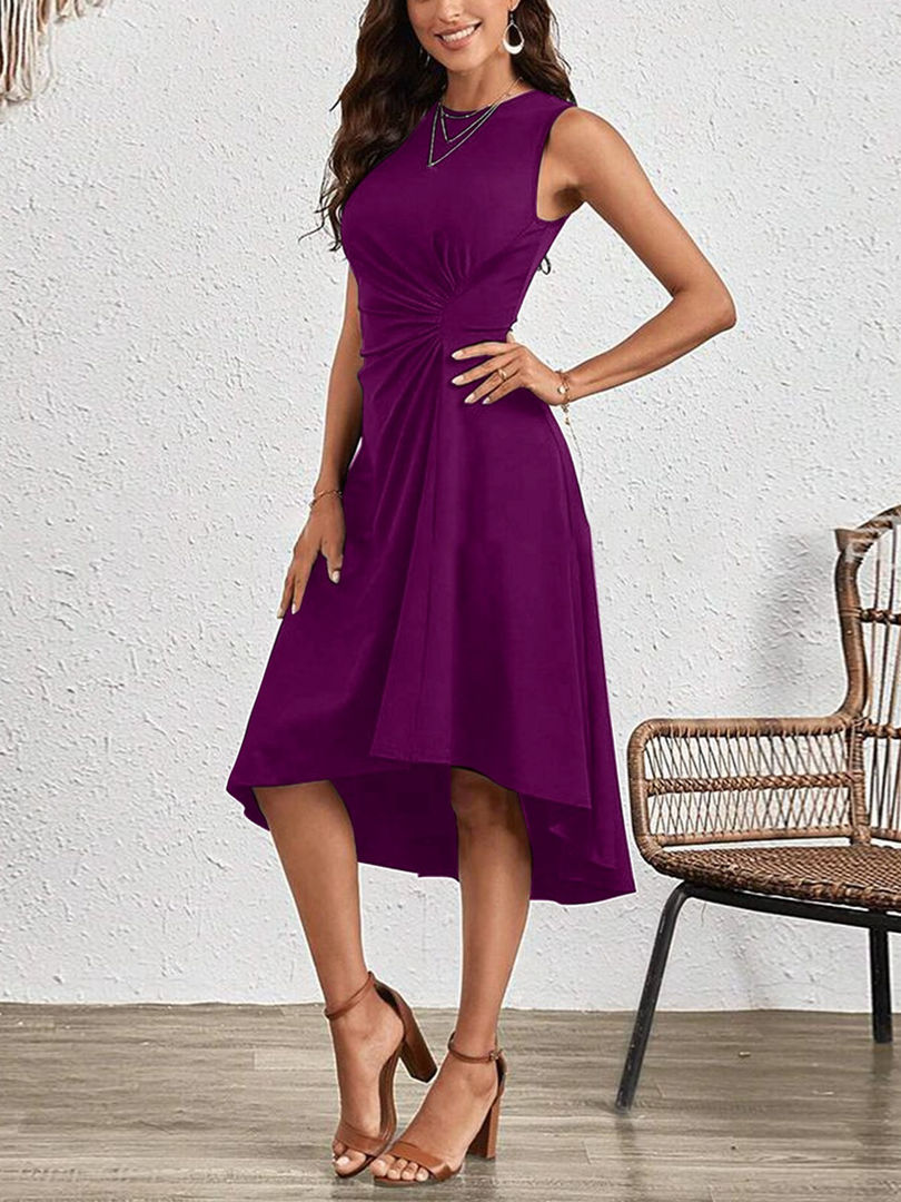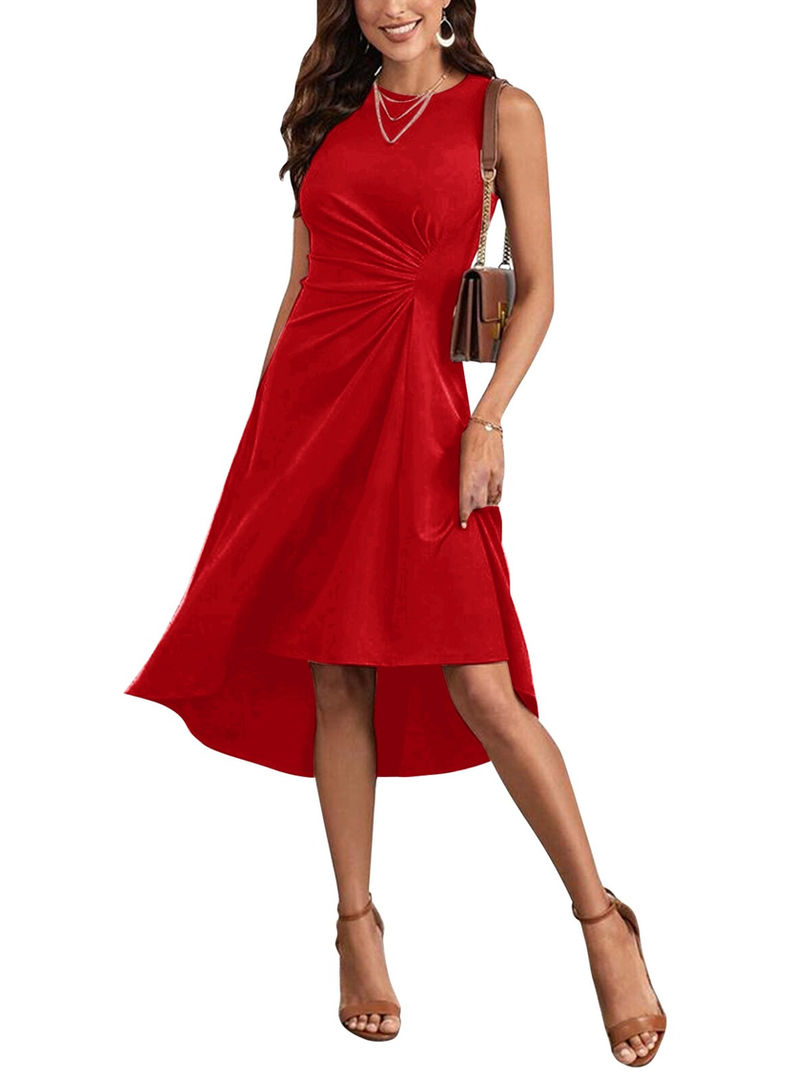 Sleeveless Solid O-Neck Knee-Length A-Line Casual Stretch Polyester Dress