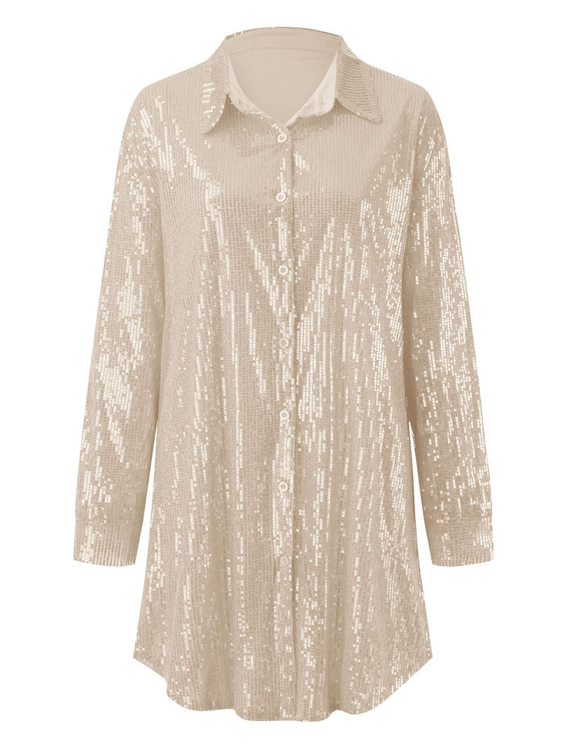 Sparkly Sequins Button Down Tunic Blouse Dress Sleeveless Knee-Length Knit