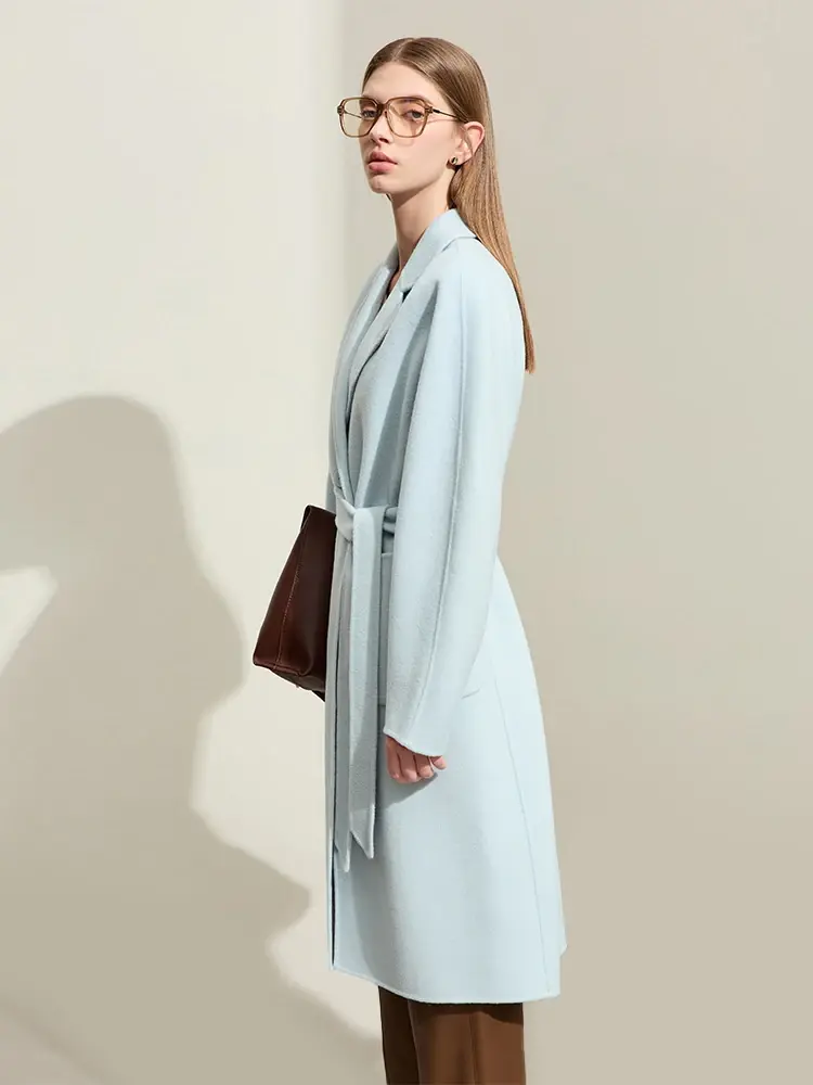 Embrace the elegance of winter with this sophisticated long coat. Crafted from luxurious wool, it features a timeless design with a turn-down collar, single-button closure, and adjustable waist for a flattering fit. The coat boasts functional pockets and a stylish sash detail, adding a touch of refinement to any ensemble.