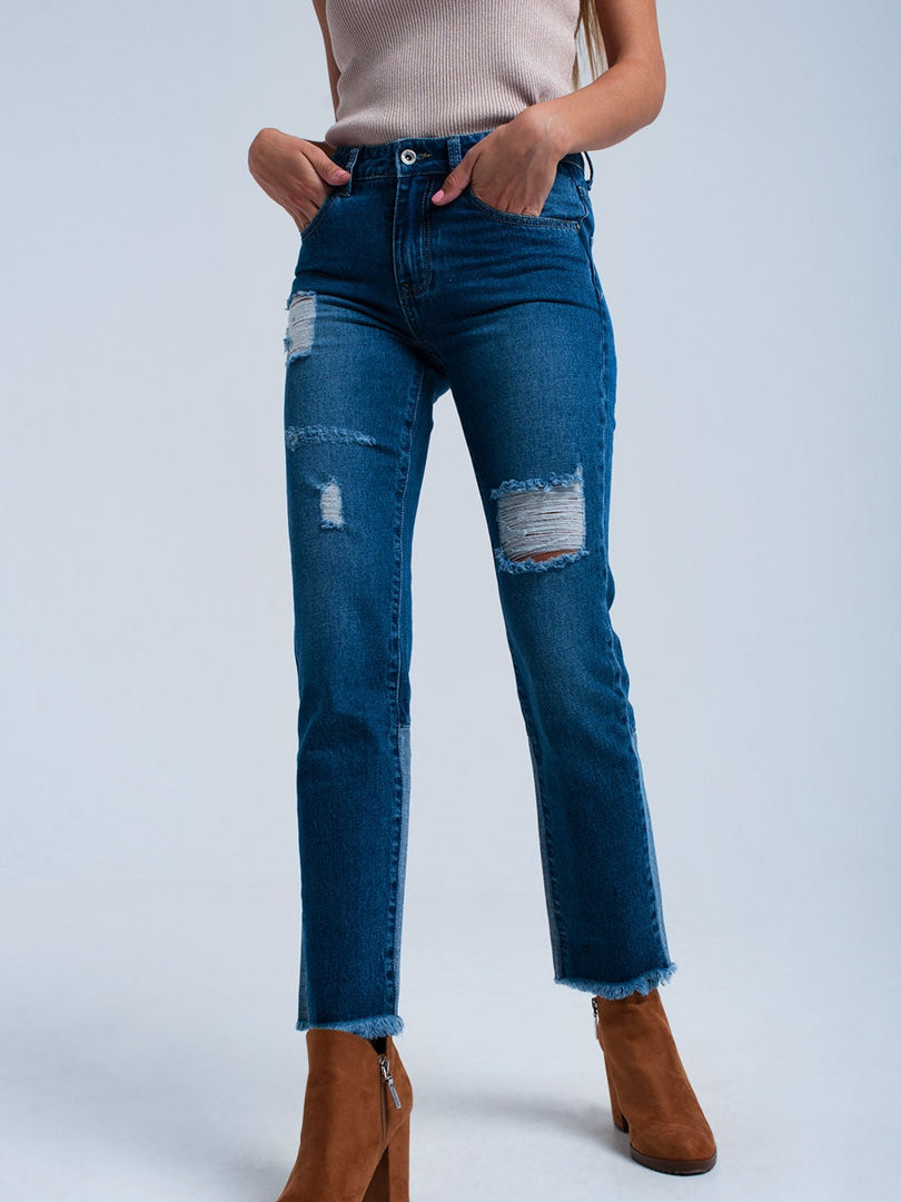 Subcategory: Jeans. Leg: Straight. Style: Casual. Jean type: Distressed. runs true to size. S.
