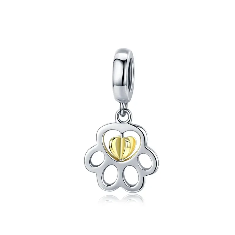 WOSTU Paw Dog Footprint Dangle Charms 925 Sterling Silver BeCQC1251