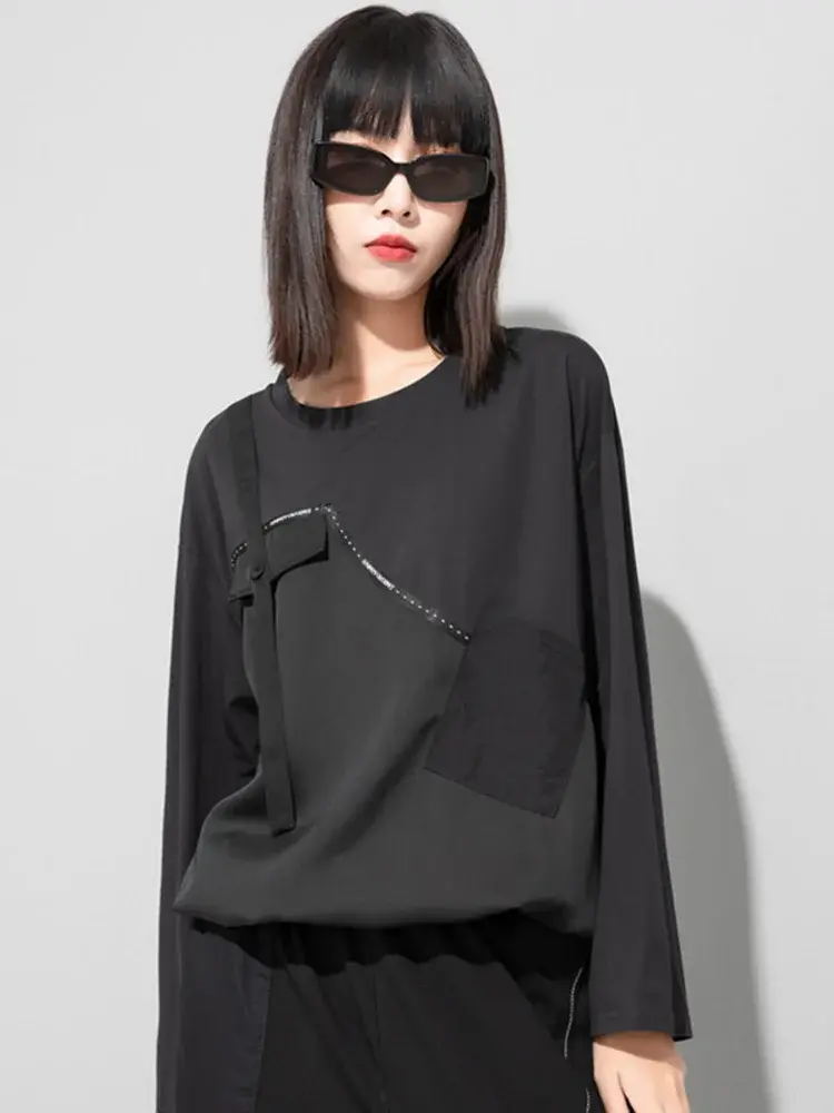 A versatile essential! This comfy o-neck tee (cotton or cotton blend) features a stylish black and green colorblock design. The relaxed fit with a hint of stretch offers everyday comfort, and the breathable fabric keeps you cool or warm depending on the season. Layer it or wear it on its own! (136 characters)