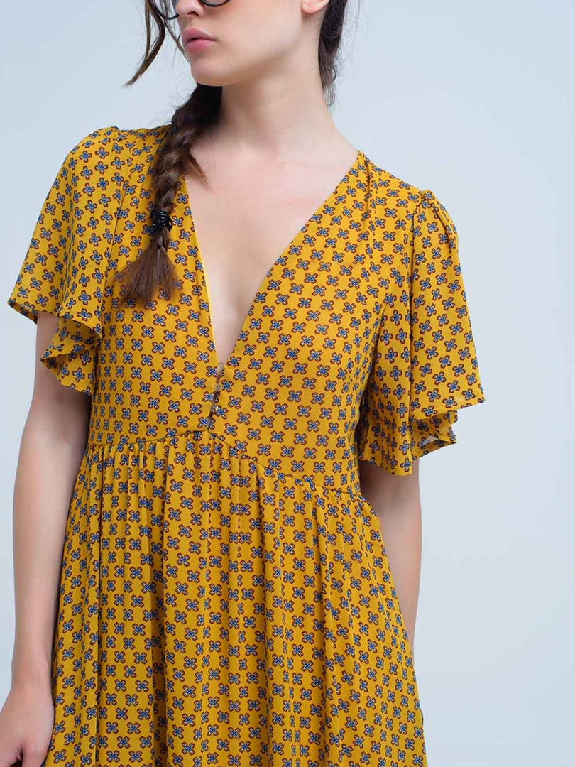 Yellow Dress With Flight and Geometric Pattern