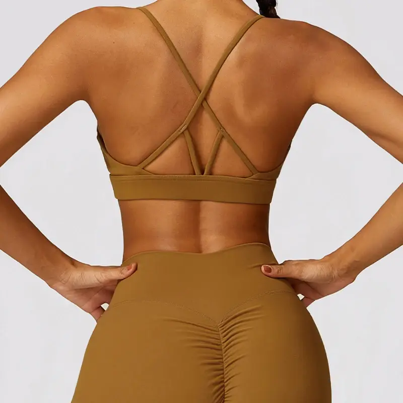 Yoga Training Push Up Sports Bra Breathable Gym Workout Fitness Top
