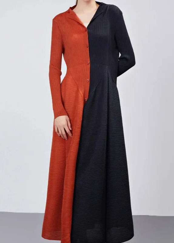 Tags: Miyake style pleated dress for women, contrast color block midi dress, long sleeve A-line pleated dress, single breasted casual dress, loose fit comfortable midi dress, high stretch polyester dress, wrinkle free travel dress women, all season patchwork dress, round neck empire waist dress, casual office pleated dress, women's mid-calf A-line dress, full sleeve button front dress, two tone pleated dress, relaxed fit pleated midi dress
